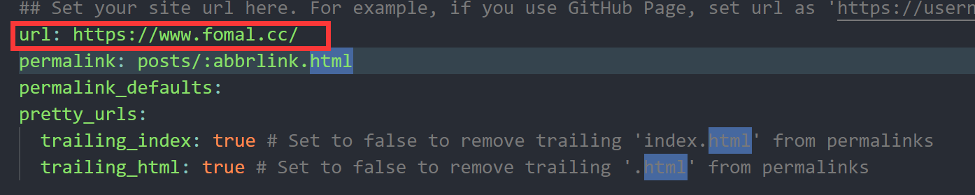 [BlogRoot]\_config.yml文件中的url配置项为自己的新域名,这样博客的文章链接才会正确生成。